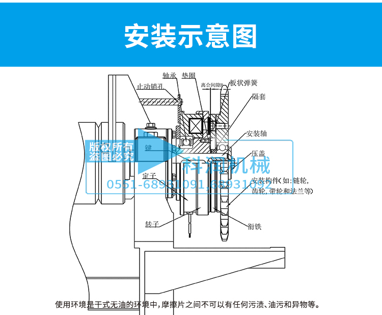 1、干式電磁離合器由徑向帶內軸承式電磁離合器主體與銜鐵組合構成方便于安裝的干式單片電磁離合器(基準經濟型)。